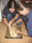 Pečení pusinek proběhlo opět výborně. 1.skupina (Venca, Doktor) pekla sýrové rohlíčky, 2. skupina (Smejki, Tesík) pekla vanilkové rohlíčky, 3. skupina (Kuře, Dračice) pekla vánočku. Nakonec z toho byl záchranářský kruh, ale všichni chrochtali blahem... Kuře